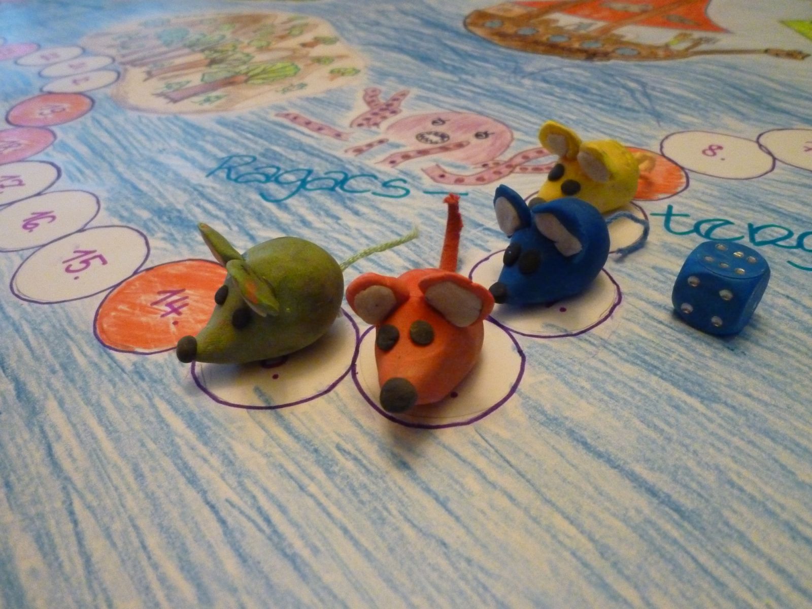 - 2 játékos egy mezőn nem állhat egyszerre. Ha olyan mezőre érsz, ahol áll már egy egér, akkor lépj a következő mezőre.